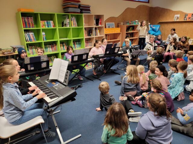 Heute haben die Kinder des Jekits-Orchesters aus dem dritten und vierten Schuljahr unter der Leitung von Frau Lagun den Erstklässlern ein kleines Konzert vorgespielt. Von Akkorderon über Klavier bis hin…