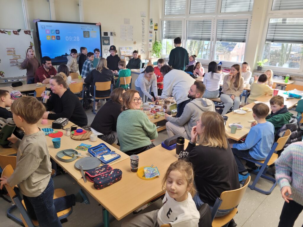 Einige Klassen starteten erst einmal mit einem gemeinsamen Frühstück. Hmm, das war lecker und eine gute Stärkung für den Tag!