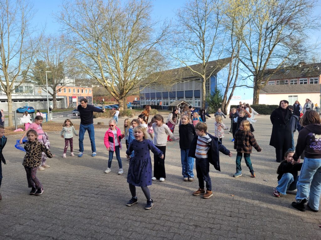 Natürlich durfte auch die freitägliche Discopause nicht fehlen. Bei strahlendem Sonnenschein, blauen Himmel und tollen Tanzliedern kam bei Groß und Klein gute Laune auf und es wurde getanzt und gesungen!