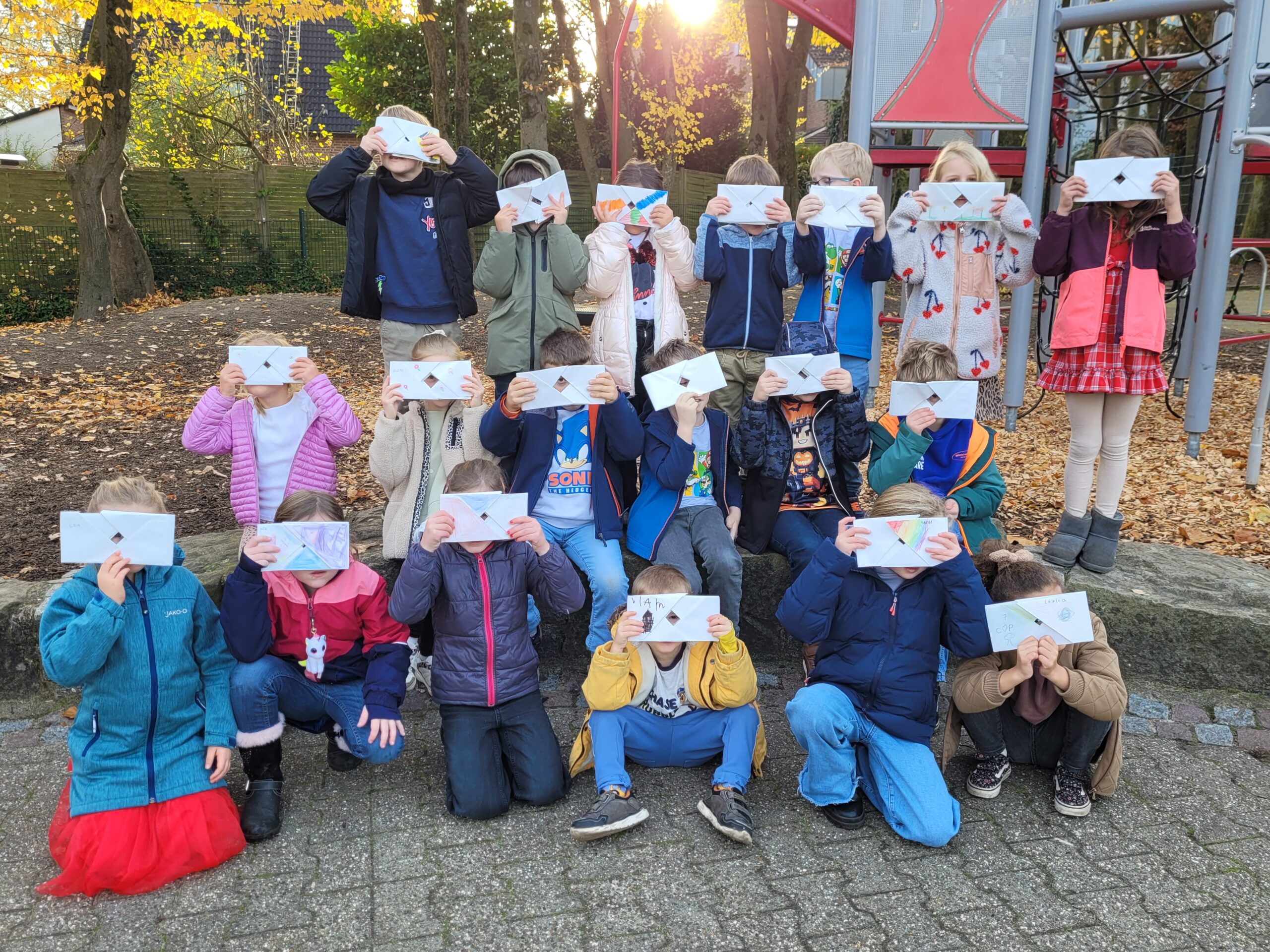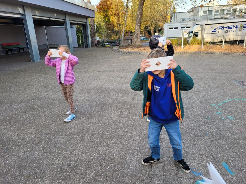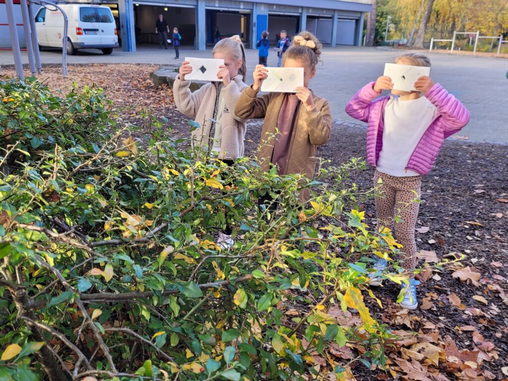 Die Klasse 1b beschäftigt sich im Moment im Religionsunterricht mit dem Thema „Schöpfung“. Dabei haben alle Kinder eine kleine Kamera gebastelt und waren heute draußen in der Natur unterwegs, um genau hinzugucken, was alles erschaffen wurde. Dabei wurden tolle Bilder gemacht von Bäumen in leuchtenden Herbstfarben, kleinen Steinchen, Eicheln, Büschen, bunten Blättern und Vielem mehr! Auch wir Menschen wurden von den Kindern fotografiert, denn auch wir sind Teil der Schöpfung. Unser Schöpfungsspaziergang hat den Kindern nicht nur viel Spaß gemacht, sondern sie haben auch erfahren, was alles zur Natur gehört und wie wir darauf achten können, dass diese wunderschönen Dinge erhalten bleiben.