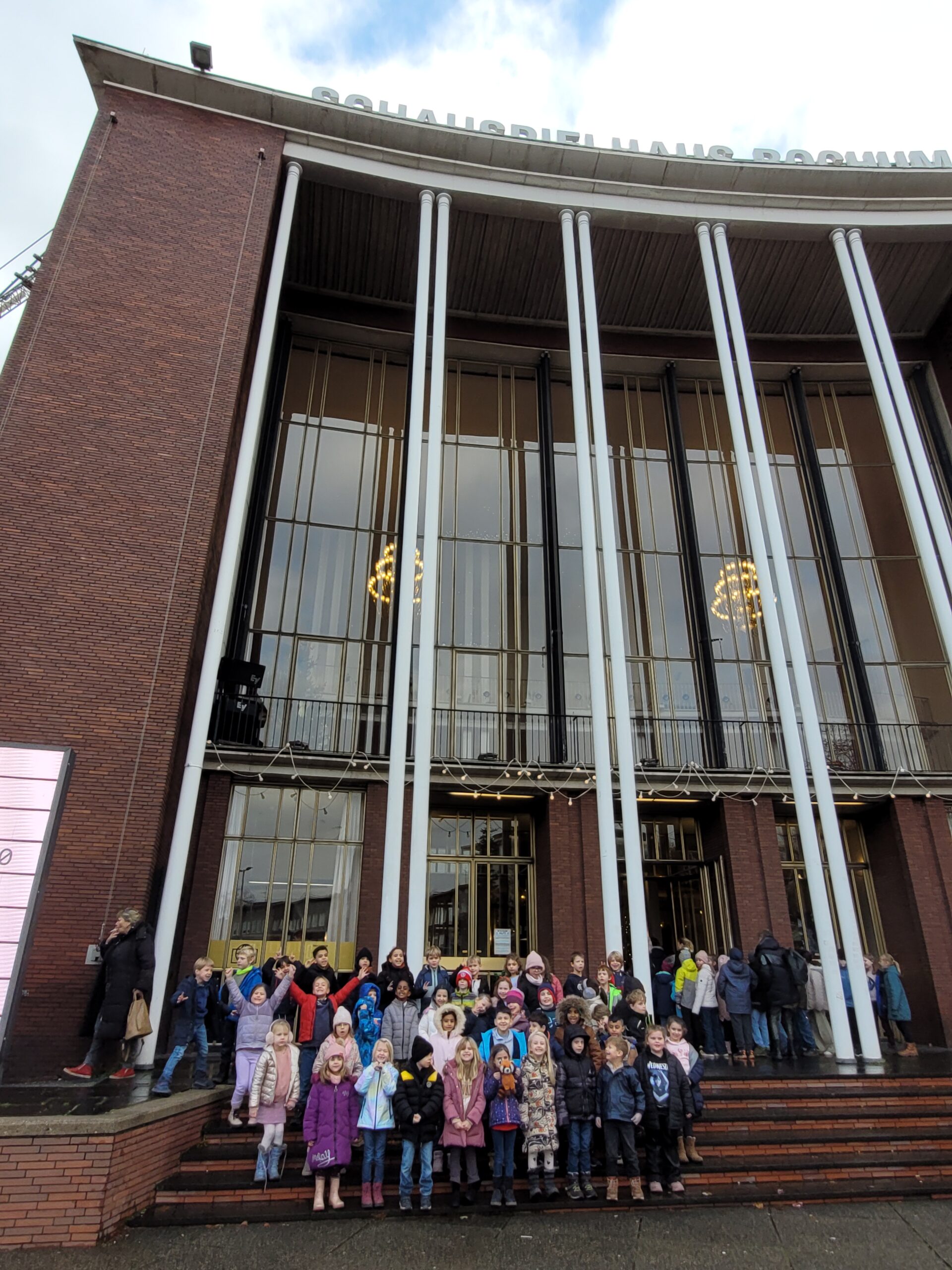 Heute ist unsere ganze Schule ins Schauspielhaus nach Bochum gefahren, um sich dort Nils Holgersson anzugucken. Mit Doppeldeckerbussen, die vom Förderverein bezahlt wurden (vielen Dank dafür!), ging es los. Alle waren ganz aufgeregt.