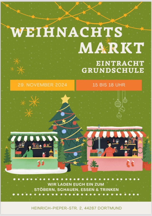 Am Freitag, den 29.11.2024, findet von 15 bis 18 Uhr der Weihnachtsmarkt der Eintracht-Grundschule auf dem Schulhof statt. Neben Leckereien und Verkaufsständen können sich die Besucher auf kleine Vorführungen der…