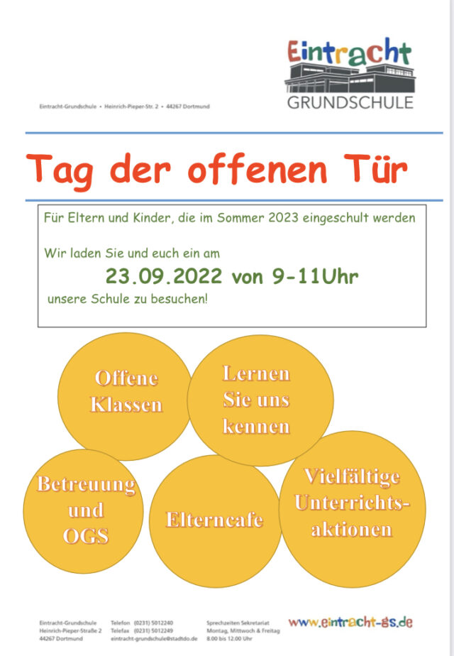 Am Freitag, den 23.09.2022, fand an der Eintracht-Grundschule nach dreijähriger Pause wieder ein Tag der offenen Tür statt. Vor allem Kinder , die im Jahr 2023 eingeschult werden konnten mit…