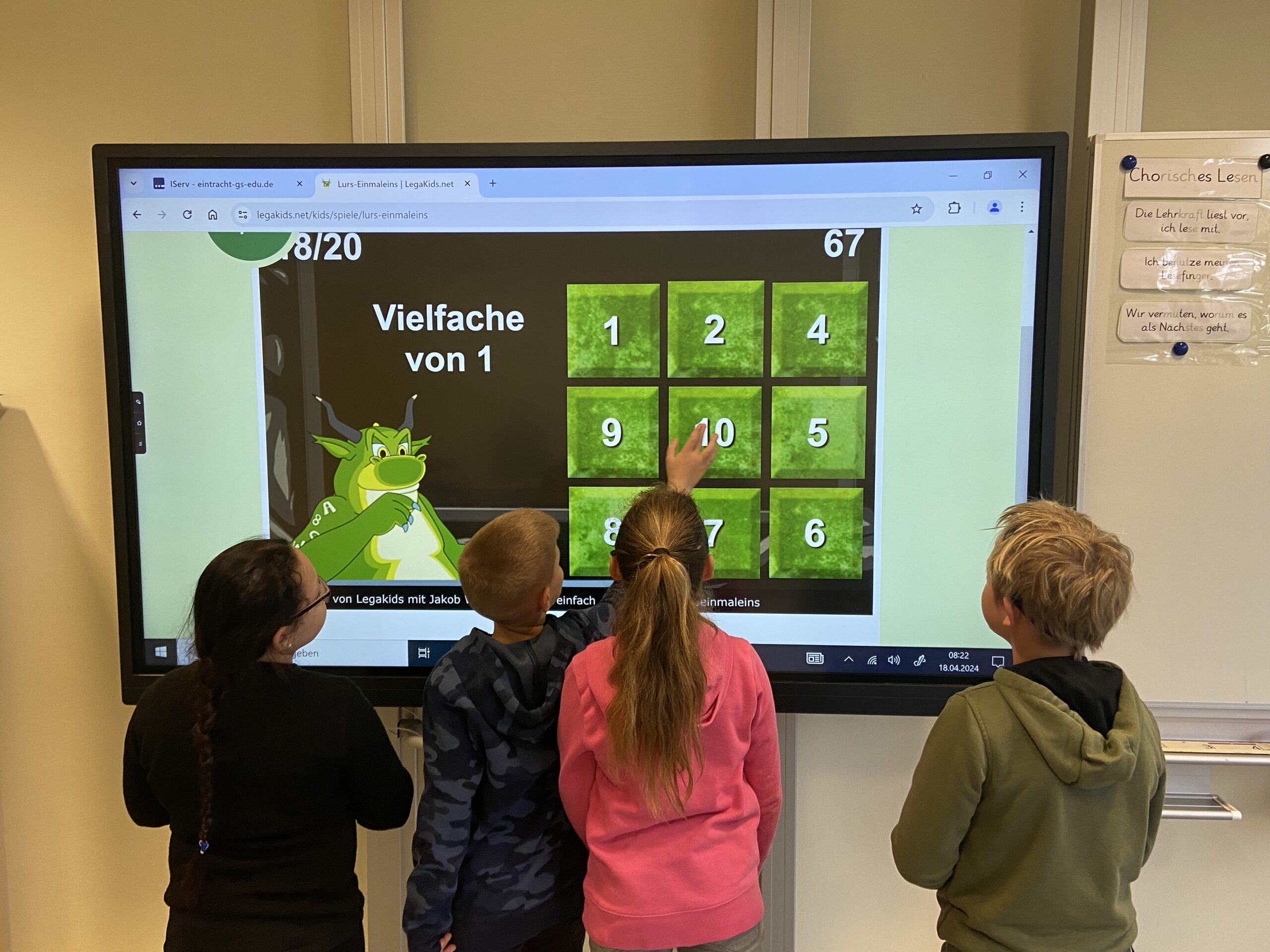 Mit Hilfe der digitalen Tafel fällt das Üben des Kleinen Einmaleins gar nicht schwer. Die Schüler und Schülerinnen hatten viel Spaß dabei!
