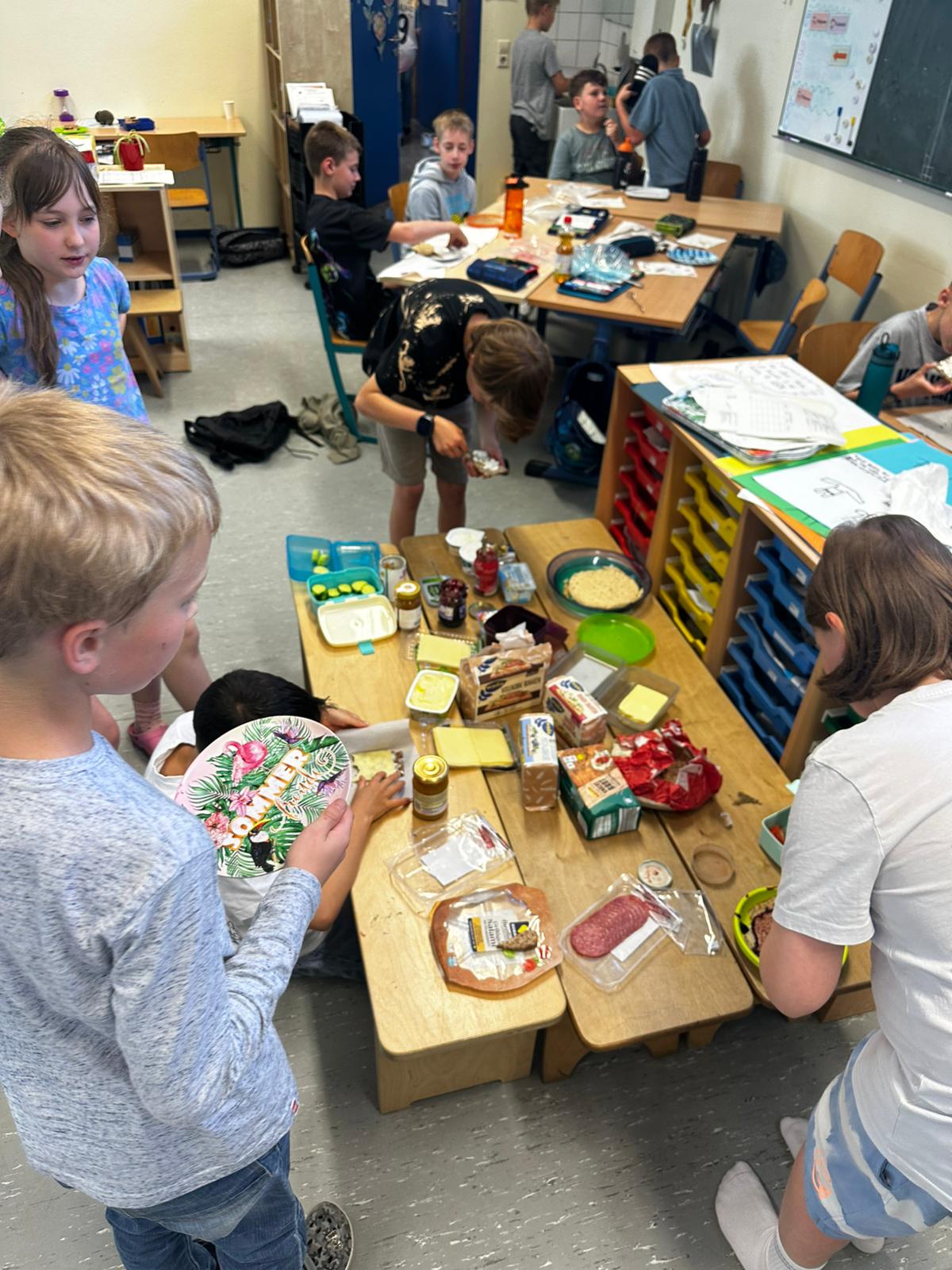 Den Brückentag letzte Woche haben wir für einen schönen Projekttag genutzt. Alles drehte sich um Europa! In allen Klassen wurde auf verschiedene Art und Weise zu diesem Thema gearbeitet. Dabei stand aber nicht nur das Lernen über Europa im Vordergrund, sondern vor allem das Erleben! So wurden z.B. im vierten Schuljahr verschiedene europäische Lebensmittel wie Crepes, Knäckebrot oder Sandwiches gekostet und auch europäische Sportarten, wie der Gummistiefelweitwurf aus Finnland, ausprobiert. Das waren tolle Erlebnisse, die viel Freude gemacht haben!