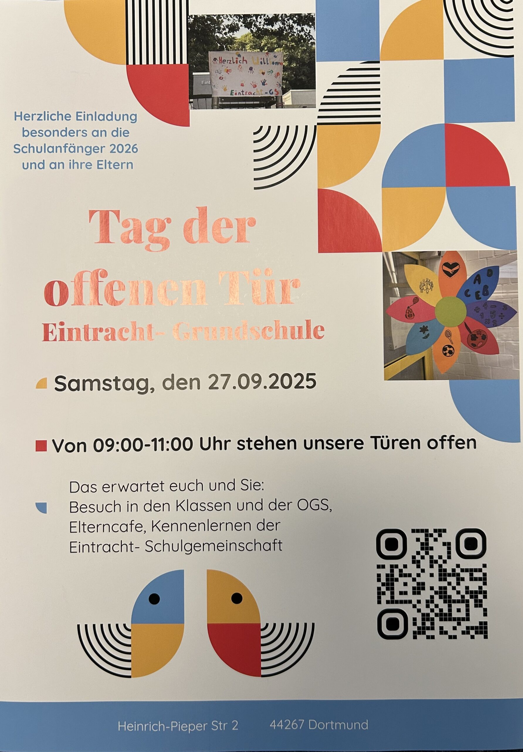 Am Samstag, den 27.09.2025, laden wir alle Interessierten ein, zwischen 9.00 Uhr und 11.00 Uhr unseren Unterricht, die Schule und die OGS zu besuchen.