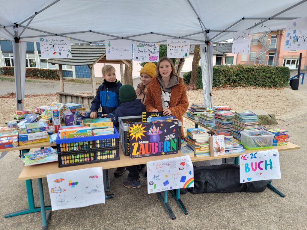 Danach gab es Waffeln, Crêpes und Würstchen, Getränke nach Wahl, diverse Verkaufsstände, u.a. von unseren Drittklässlern mit selbst gebastelten Kerzen und leckerem Quittengelee, einen Bücher- und Spielestand von unseren Viertklässlern und noch vieles mehr.