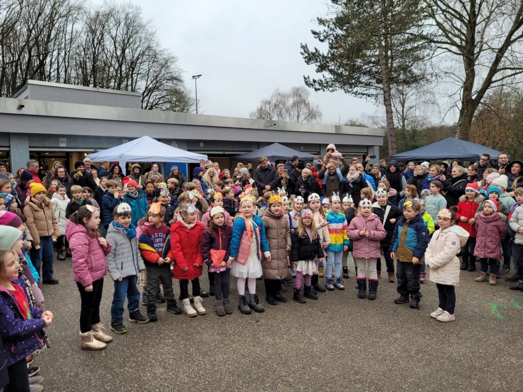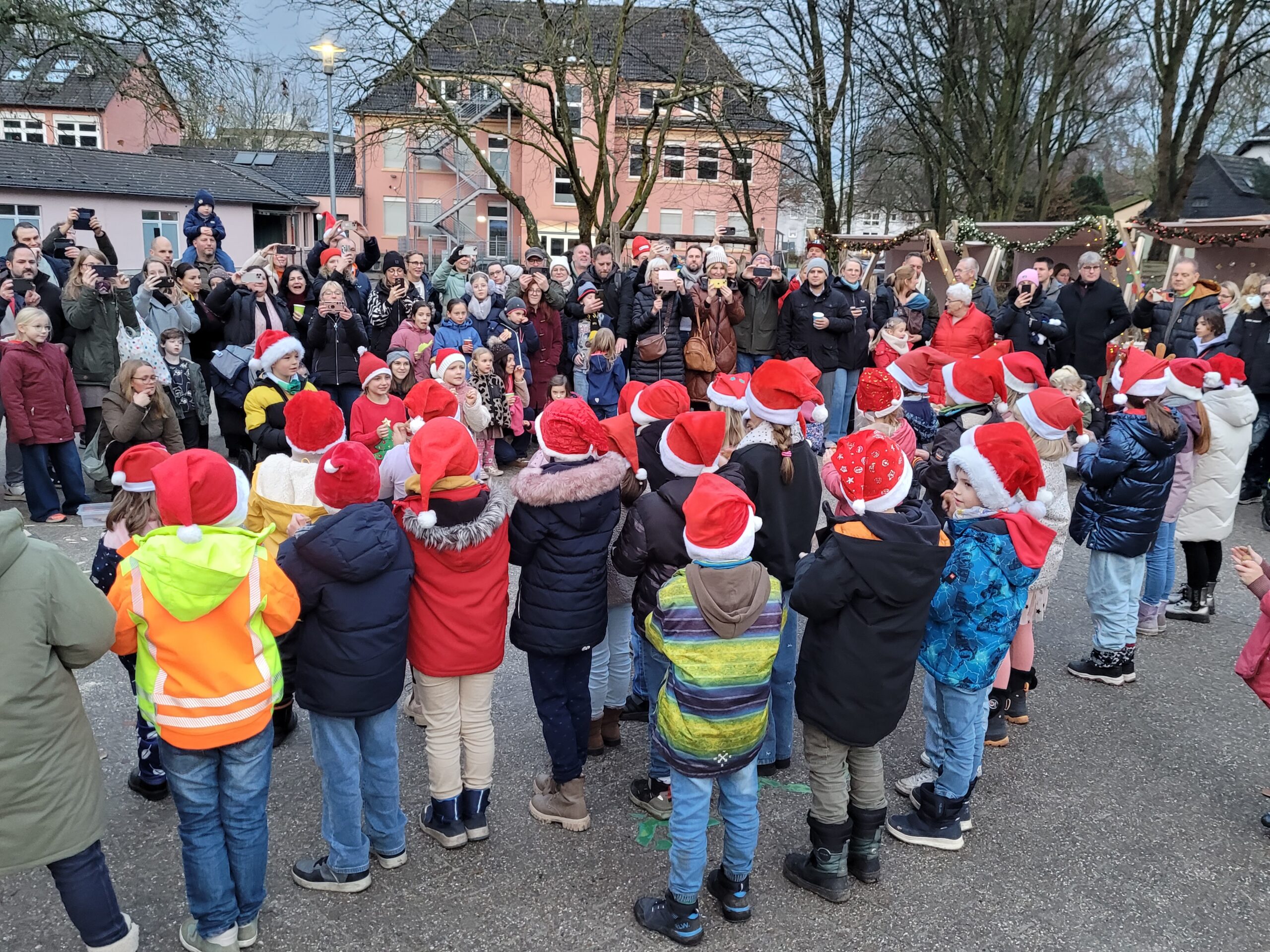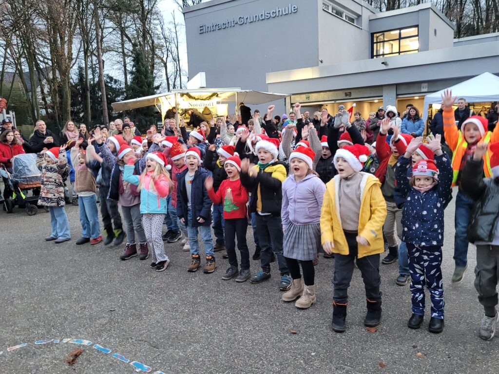 Nach dem wunderschönen Basteltag heute Morgen folgte am Nachmittag ein großes Highlight unseres Schuljahres: unser Weihnachtsmarkt! Viele Kinder, OGS- und Lehrkräfte, Eltern, Geschwister, Großeltern, Freunde und andere waren gekommen, um gemeinsam zu feiern. Den Auftakt machten unsere Erstklässler, die Esel und die Mäuse, mit dem selbst gedichteten Weihnachtslied „Das Eintracht Weihnachtswunder“! Unterstützt von den größeren Kindern sangen und tanzten die Erstklässler voller Einsatz und Freude!