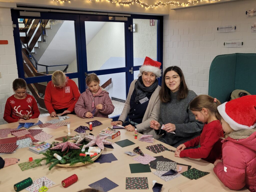 Drinnen gab es tolle Bastelangebote. Ob Faltsterne, Sterngirlanden oder Weihnachtskarten, hier konnte jeder etwas finden!